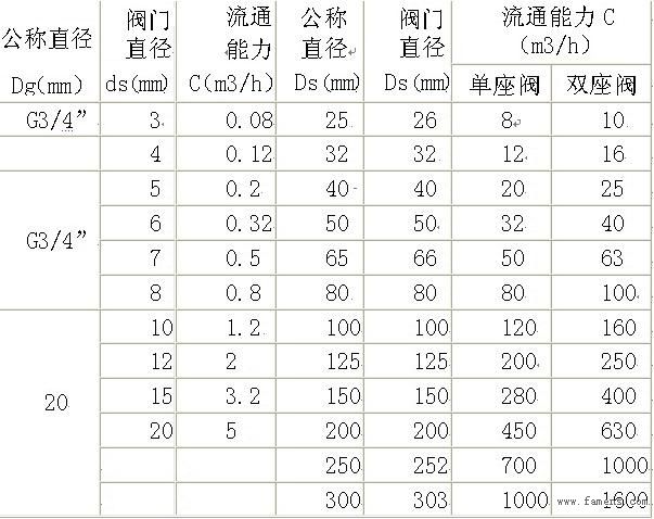部分國(guó)產(chǎn)調(diào)節(jié)閥流通能力C值表
