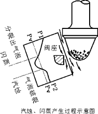| 如果閥門上的壓差(P1-P2)大于了介質(zhì)的最大飽和壓差(△Pmax),那么就會(huì)產(chǎn)生閃蒸, 由此再產(chǎn)生汽蝕,并對閥門內(nèi)部及相鄰近的管道結(jié)構(gòu)造成破壞。 | |