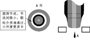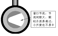 | 介質(zhì)流經(jīng)節(jié)流口時,在同樣的節(jié)流面積條件下,如果節(jié)流間隙小,不干凈介質(zhì)不易通過, 容易堵塞;反之,則不易堵塞。對柱塞型閥芯(見圖六),它的節(jié)流面積分布在圓周上, 其節(jié)流間隙大概等于面積除以圓周長;再看窗口型閥芯(見圖七),其面積分布在窗口上 而不是在整個圓周上,所以其間隙大,顆粒很容易通過。由此可見,節(jié)流面積越集中(不是圓周分布),節(jié)流間隙越大,防堵性能就越好。這樣的典型產(chǎn)品有“V”型球閥、全功能超輕型調(diào)節(jié)閥等。尤其在小開度工作時,前者的節(jié)流間隙更小,更易堵卡;后者集中在“V”形口的尖端部份,面積集中,充分顯示了“V”形節(jié)流的防堵優(yōu)勢。 | ||||||