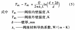 在實(shí)際工程應(yīng)用中,可將該超高溫閥座導(dǎo)熱體近似認(rèn)為是圓筒壁,由傅里葉定律求得閥座壁面溫差。