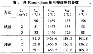 通過試驗(yàn)研究和理論分析得知:最大誤差不超過5%,理論值與實(shí)驗(yàn)值基本吻合。為研究方便,可進(jìn)一步采用對流換熱理論分析不同槽道尺寸及不同冷卻水流量下閥座的換熱特性。